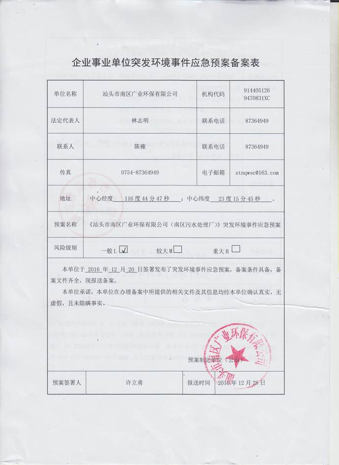 1、單位名稱(chēng): 汕頭市南區(qū)廣業(yè)環(huán)保有限公司